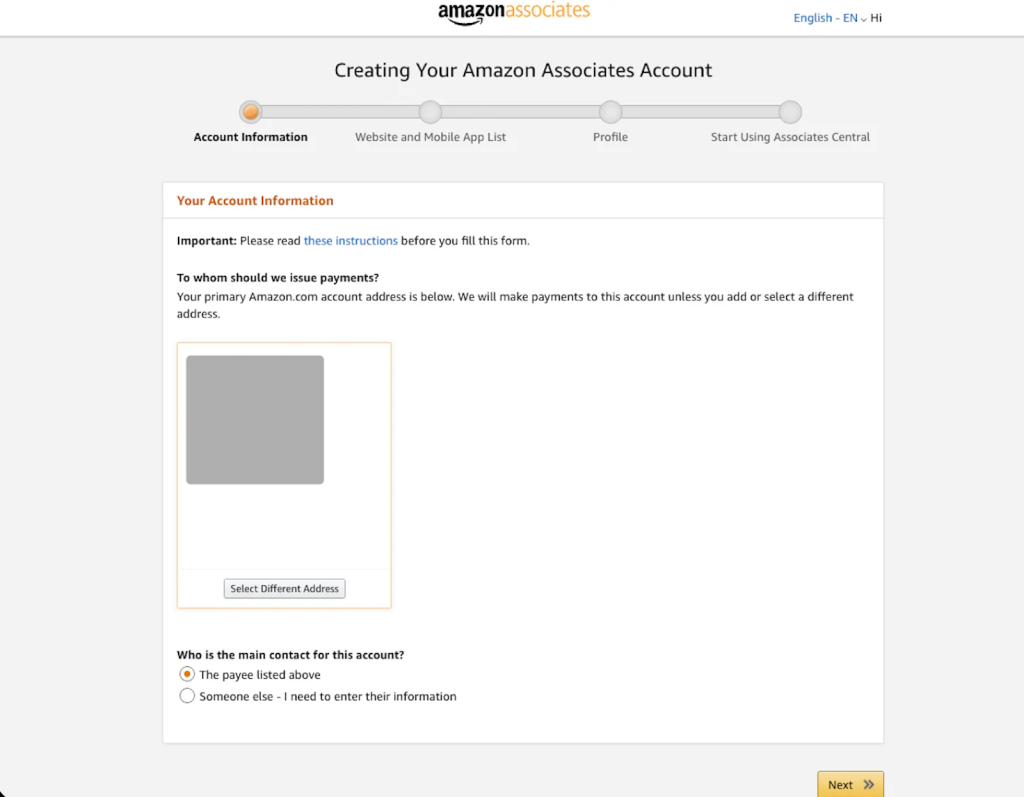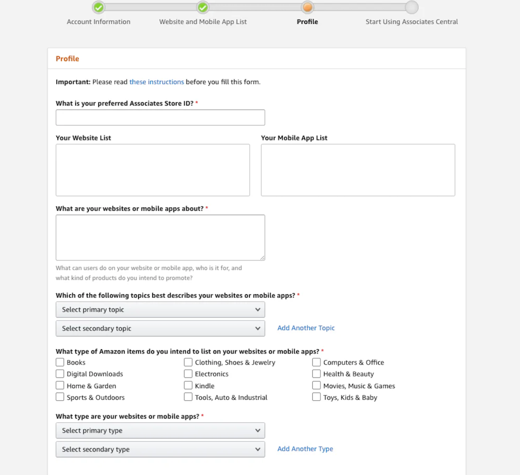 Next, Amazon asks for essential information about you and your affiliate presence. This includes contact details and a short overview of how you plan to participate in affiliate marketing with Amazon. These details allow Amazon to track performance accurately and ensure commissions are credited correctly.
