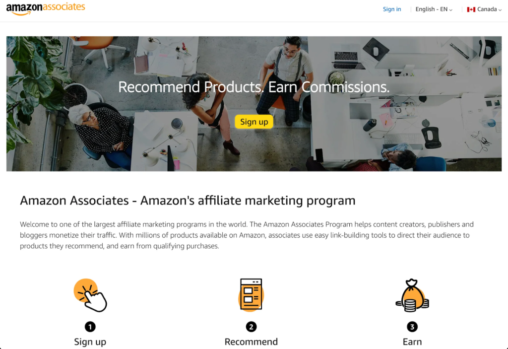 Amazon hosts one of the most popular affiliate marketing programs, with nearly half of the entire affiliate network market. With more than 900,000 affiliate partners, the Amazon Associates program helps content creators, publishers, and bloggers monetize their traffic.